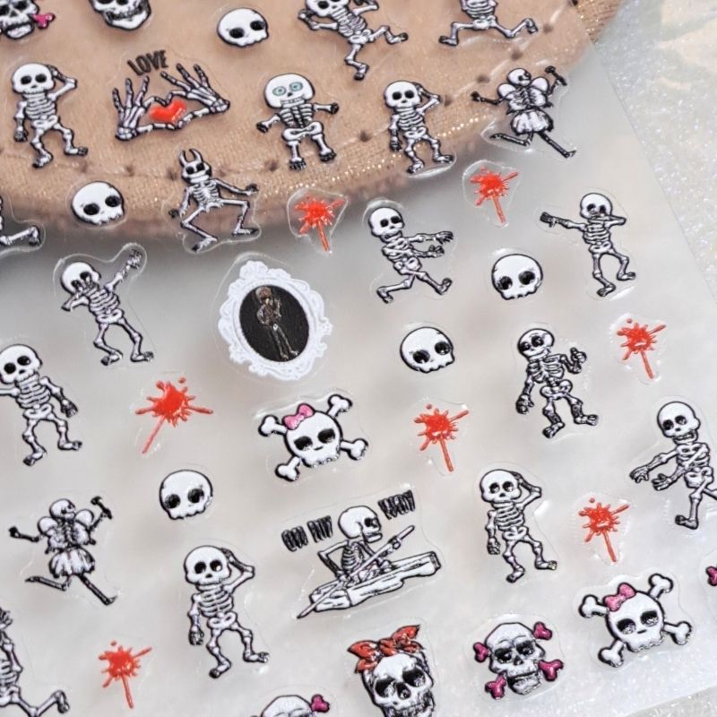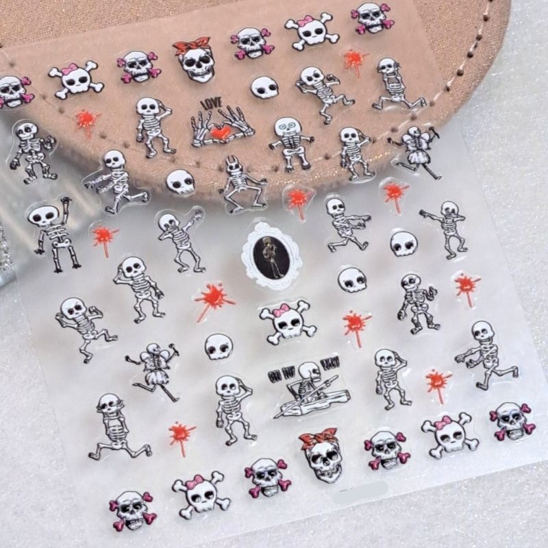 Our 5D Cute Skeleton stickers are a great way to add texture to your nail art and craft designs.