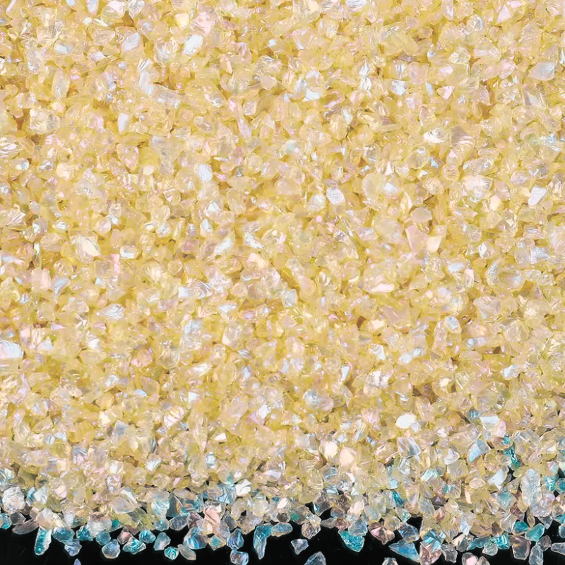 Our AB Baby Yellow Crushed Glass is supplied in a 25g pack and is suitable for nail art decoration, resin and craft use.