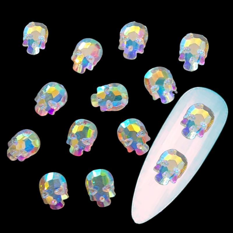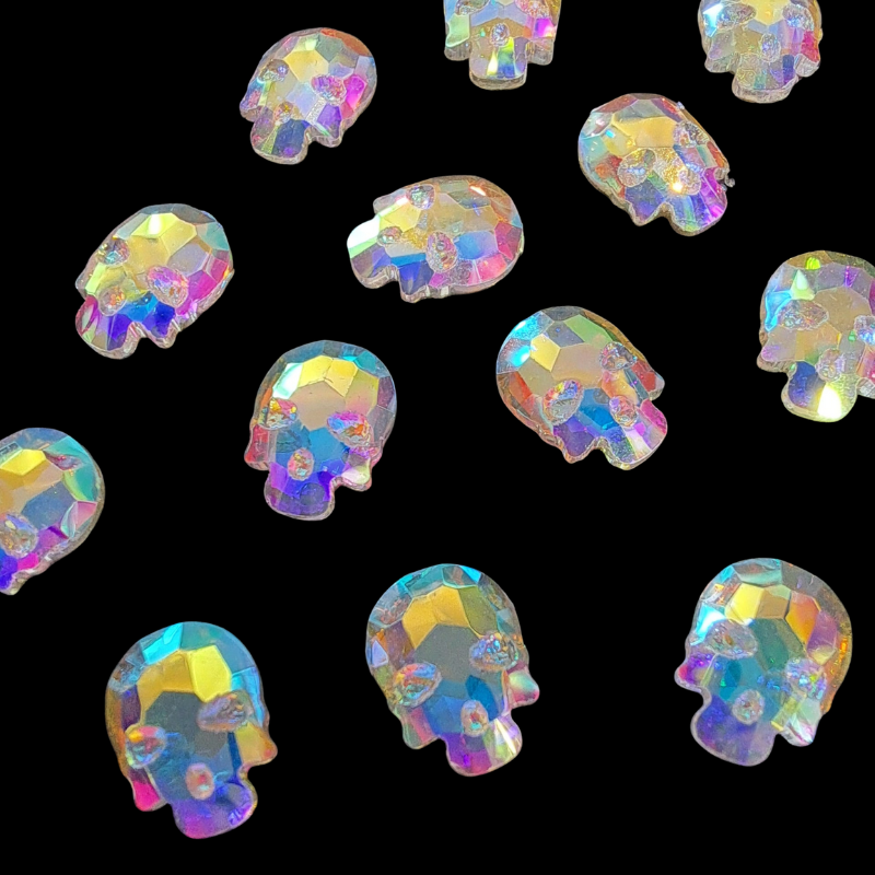 Our Skull Clear Crystals are flatback and the measurements are approximately 9mm x 6mm and supplied as a single item.