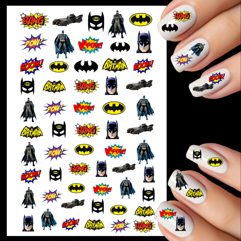 Our Batman water decals are a lovely way to decorate your nails and crafts and contain 56 images per sheet with 3 size variations of the design images.