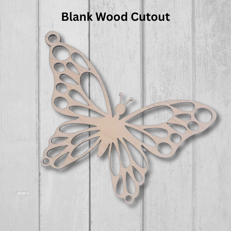 The butterfly resin art cut outs can be ordered in either 4mm maple wood or 3mm black acrylic.