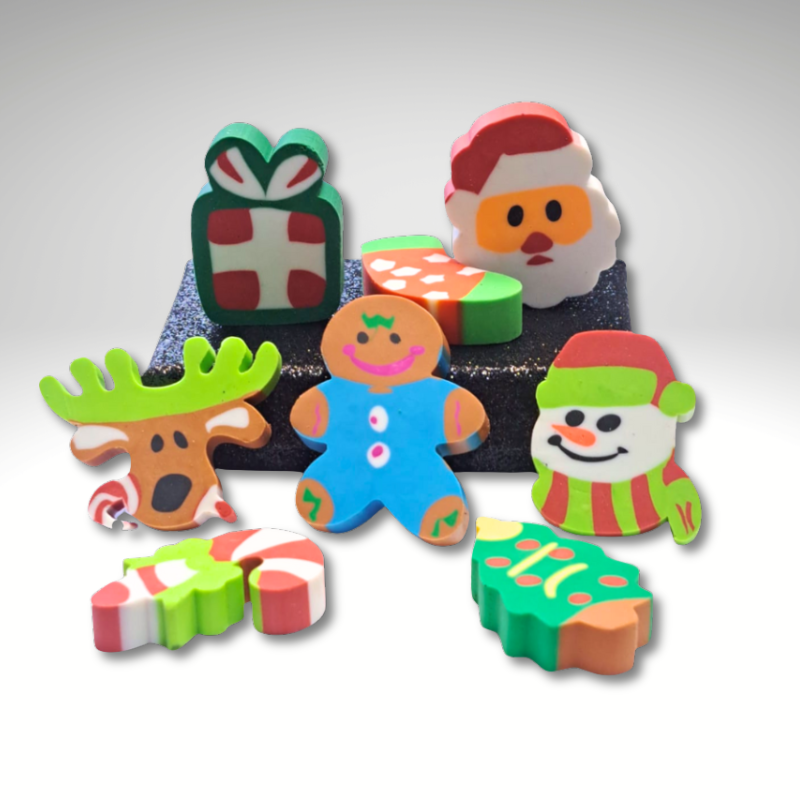 Our Xmas Erasers make great little stocking fillers and are supplied in sets of 8 with a choice of 2 set variations