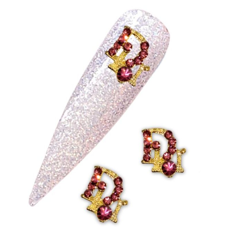 Our Pink Crystal Desgner inspired nail charms are created on a gold mount with the measurements being approximately 8.5mm x 10mm with a curved back.