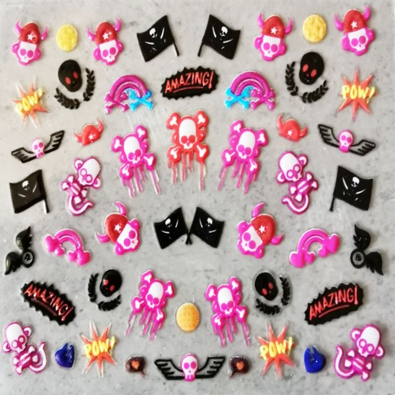 Our Halloween 3D nail art stickers are really effective for your nail designs and the sticker sheet is approximately 6cm x 5cm and it has a clear sticky back, just prepare your nails and then apply the sticker and top coat.