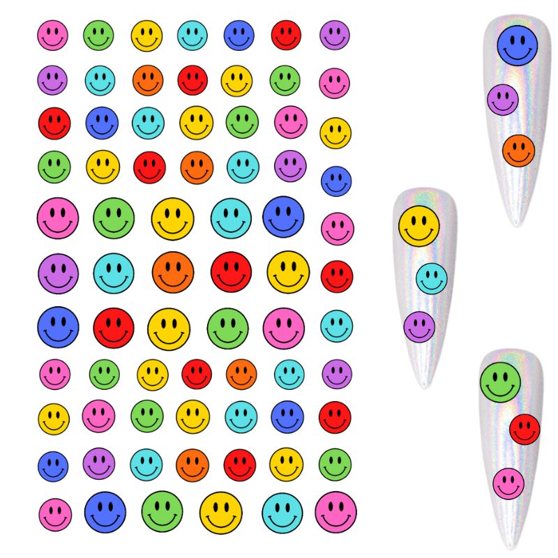 Our Happy Smiley Nail decals contain 73 images on each sheet and are on a transparent backing.