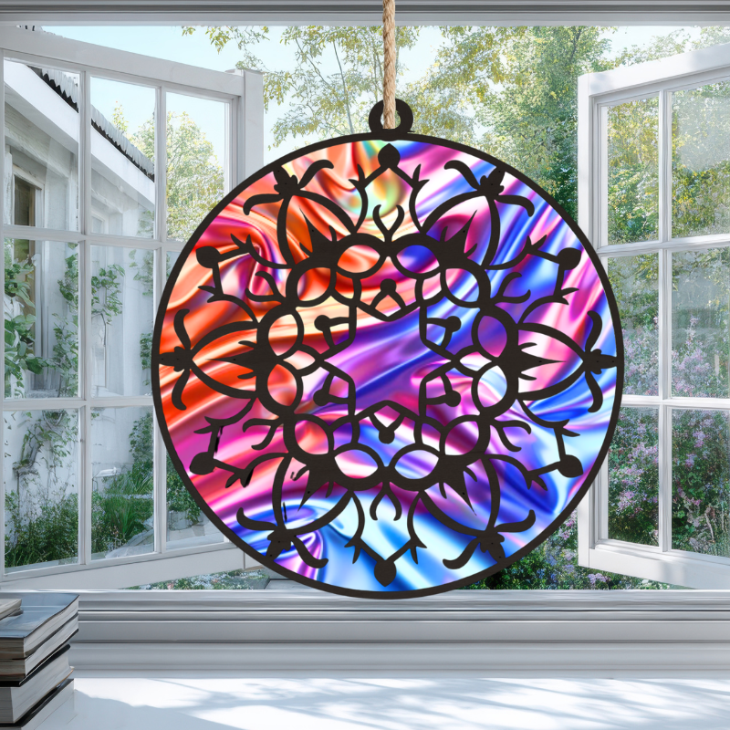 The Mandala resin art suncatcher cut outs can be ordered in either 4mm maple wood or 3mm black acrylic.