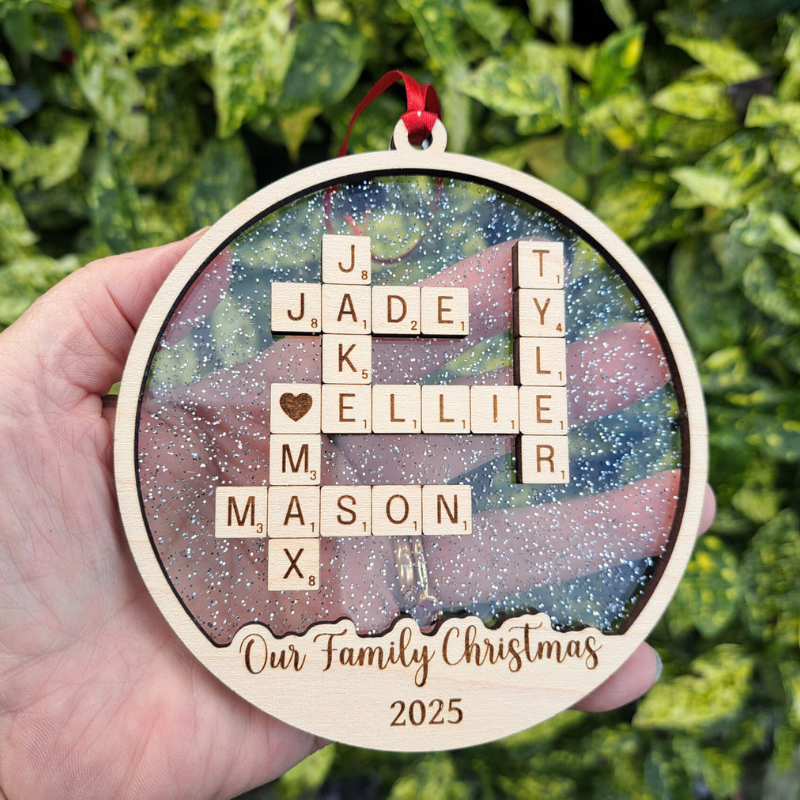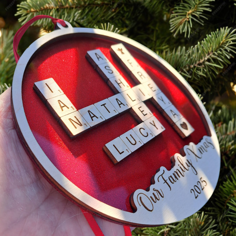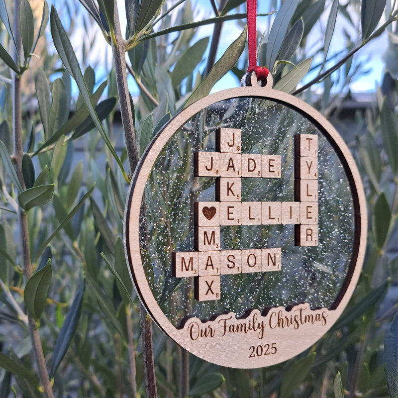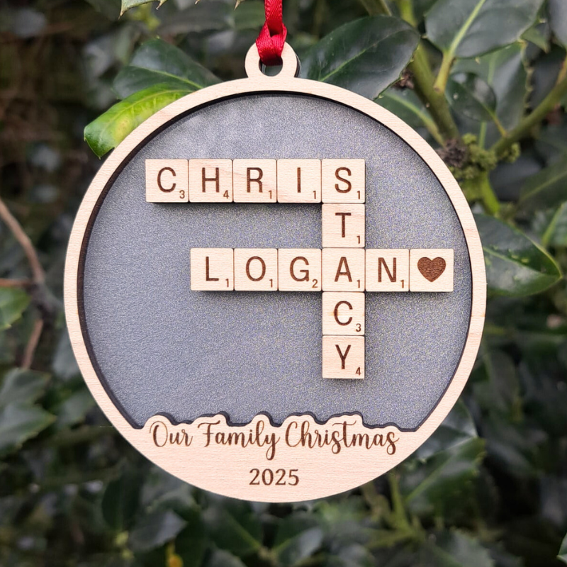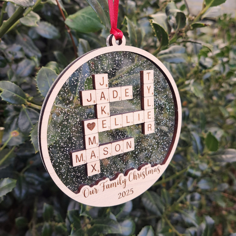 Personalised Scrabble Baubles, Scrabble Xmas Baubles, Novelty Family Xmas Baubles, Family Xmas Tree Decorations