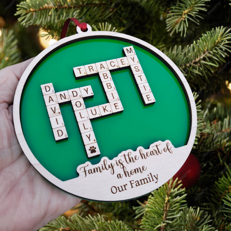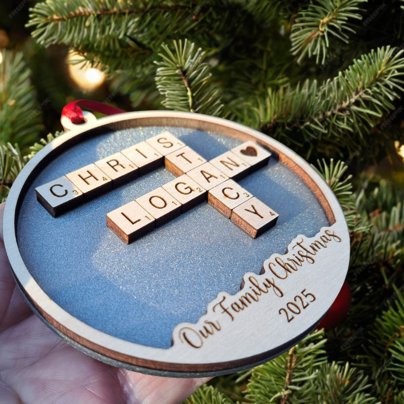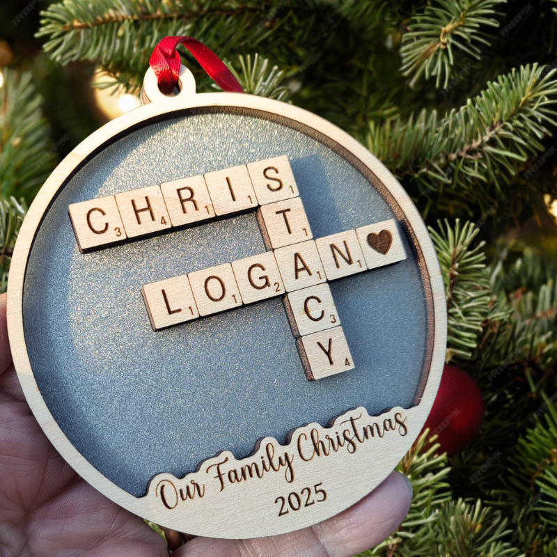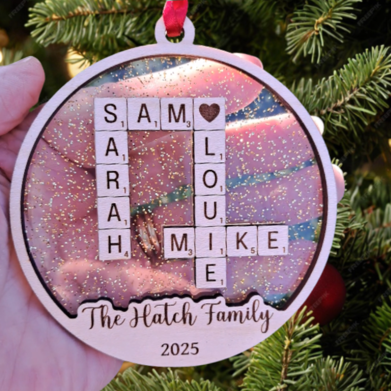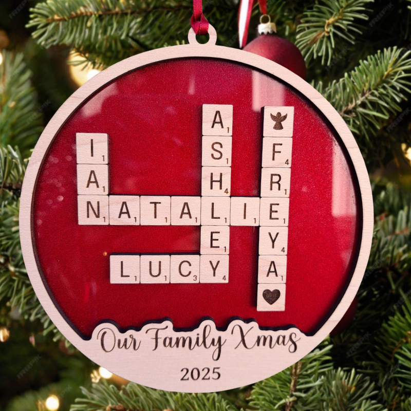 Personalised Scrabble Baubles, Scrabble Xmas Baubles, Novelty Family Xmas Baubles, Family Xmas Tree Decorations