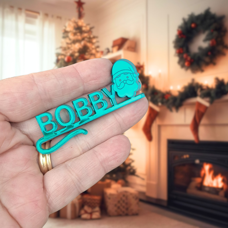 Each tag is shaped in the form of a name with a Santa face at end and can be personalised with the names of your guests.
