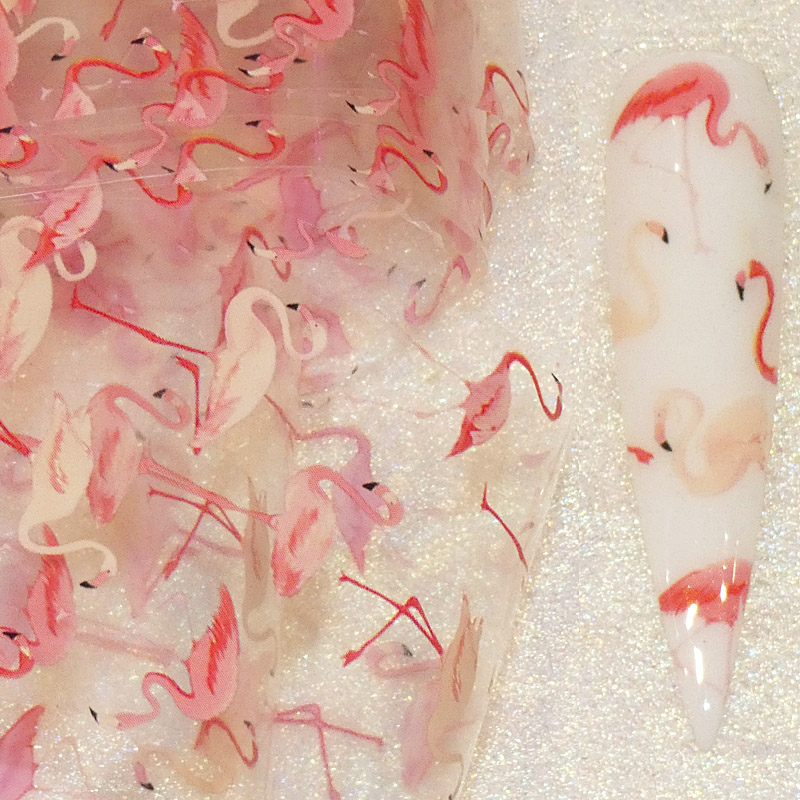 Our Pink Flamingo nail art Transfer Foil is designed with a clear backing and is supplied as either a half a metre or 1 metre in length by 4cm in width which can be selected from the drop down menu.