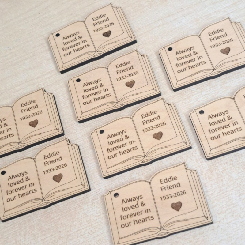Made from 4mm maple wood and laser engraved with your own personalised details of your choice, examples are shown in the display images.