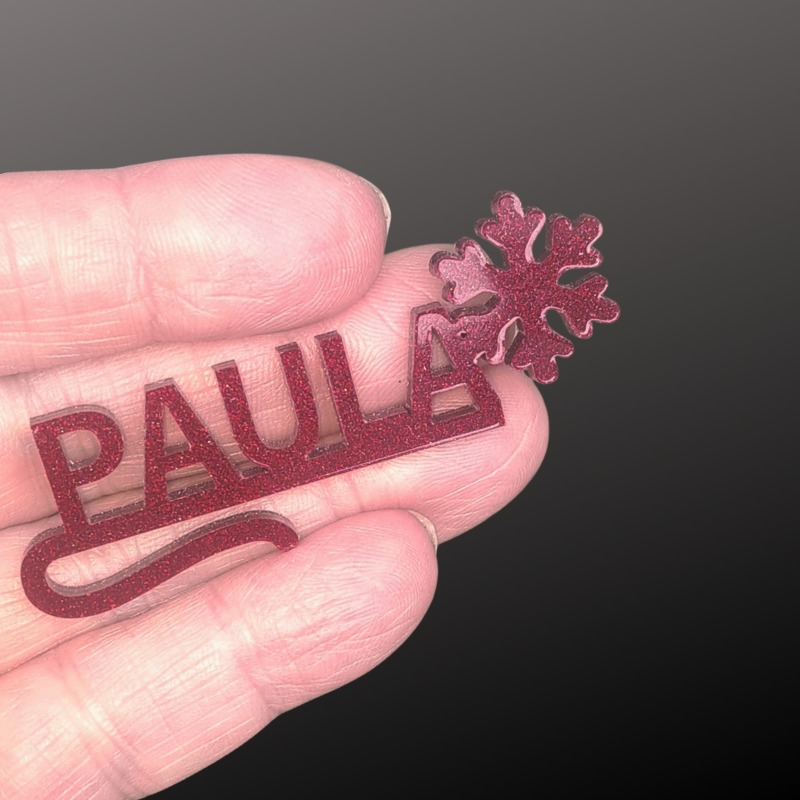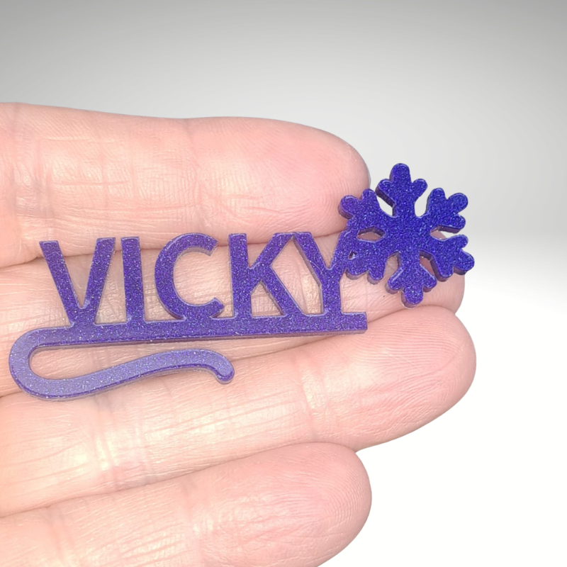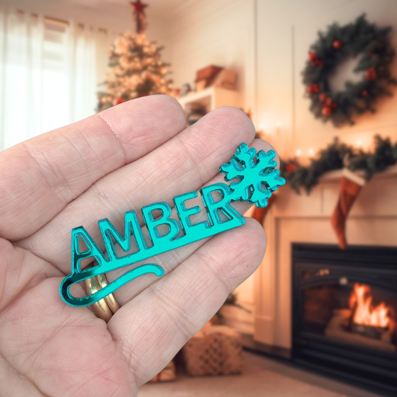 Each tag is shaped in the form of a name with a snowflake at end and can be personalised with the names of your guests.