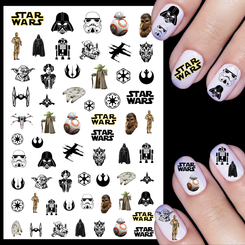 Our Star Wars water decals are a lovely way to decorate your nails and crafts and contain 61 images in 3 design sizes.