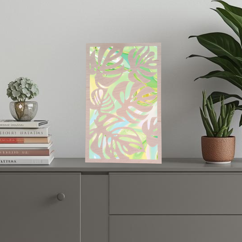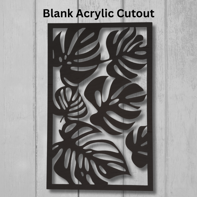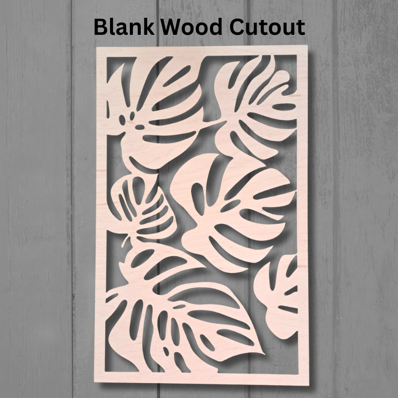The Tropical Monstera Leaf resin art cut outs can be ordered in either 4mm maple wood or 3mm black acrylic.