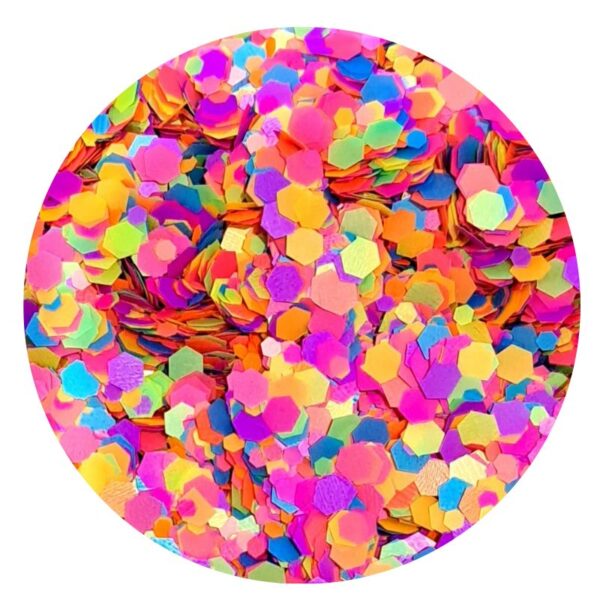 Our Ultimate Neon Mega Glitter Mix is suitable for craft, epoxy resin, nail art, face, hair and body.